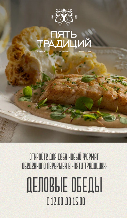 Наши бизнес ланчи — это гармония традиций и современности: три блюда, в которых узнаваемые ноты русской кухни дополнены утончёнными европейскими штрихами.