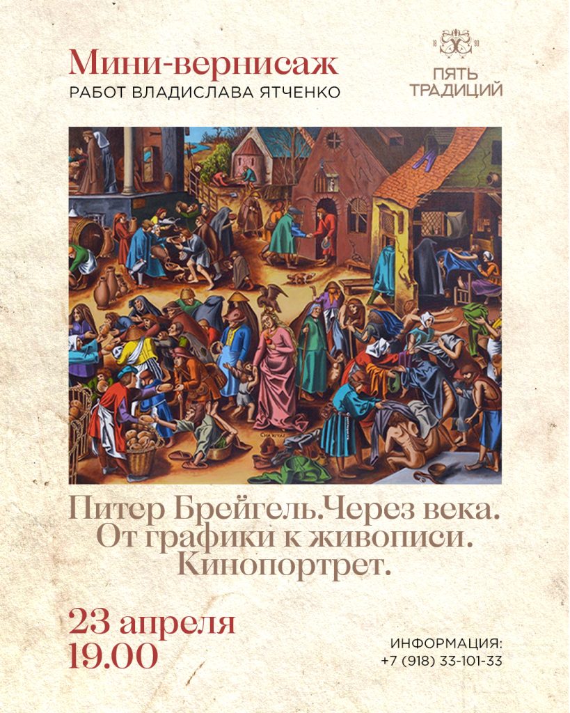 • Демонстрация фильма «Большая рыба или страсти по Брейгелю» о жизни и создании полотен художника Владислава Ятченко по мотивам работ великого мастера.