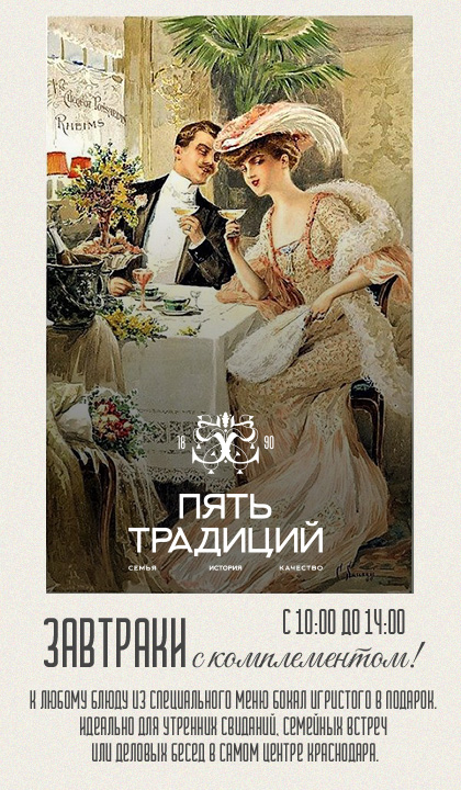 Сделав заказ мясного блюда с мангала*, вы получаете бутылку прекрасного вина Крю Лермонт спешен резерв от «Фанагории» (https://www.fanagoria.ru/collection/cru-lermont) и наслаждаетесь застольем в атмосферных залах нашего ресторана.